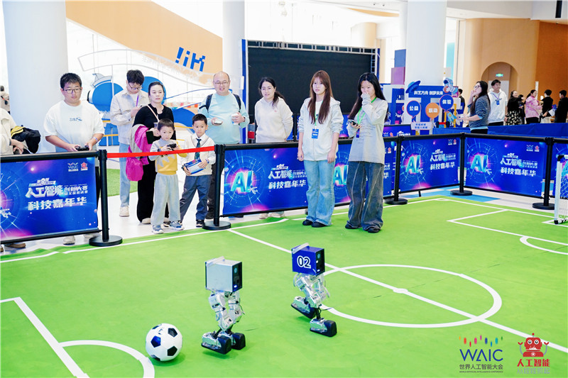 南汇新城镇党委副、镇长孙筱和表示:“青少年探索科技时那专注的眼神,如机器人足球、模拟飞行体验、AI造物趣桌等,在AI创无界赛道中。